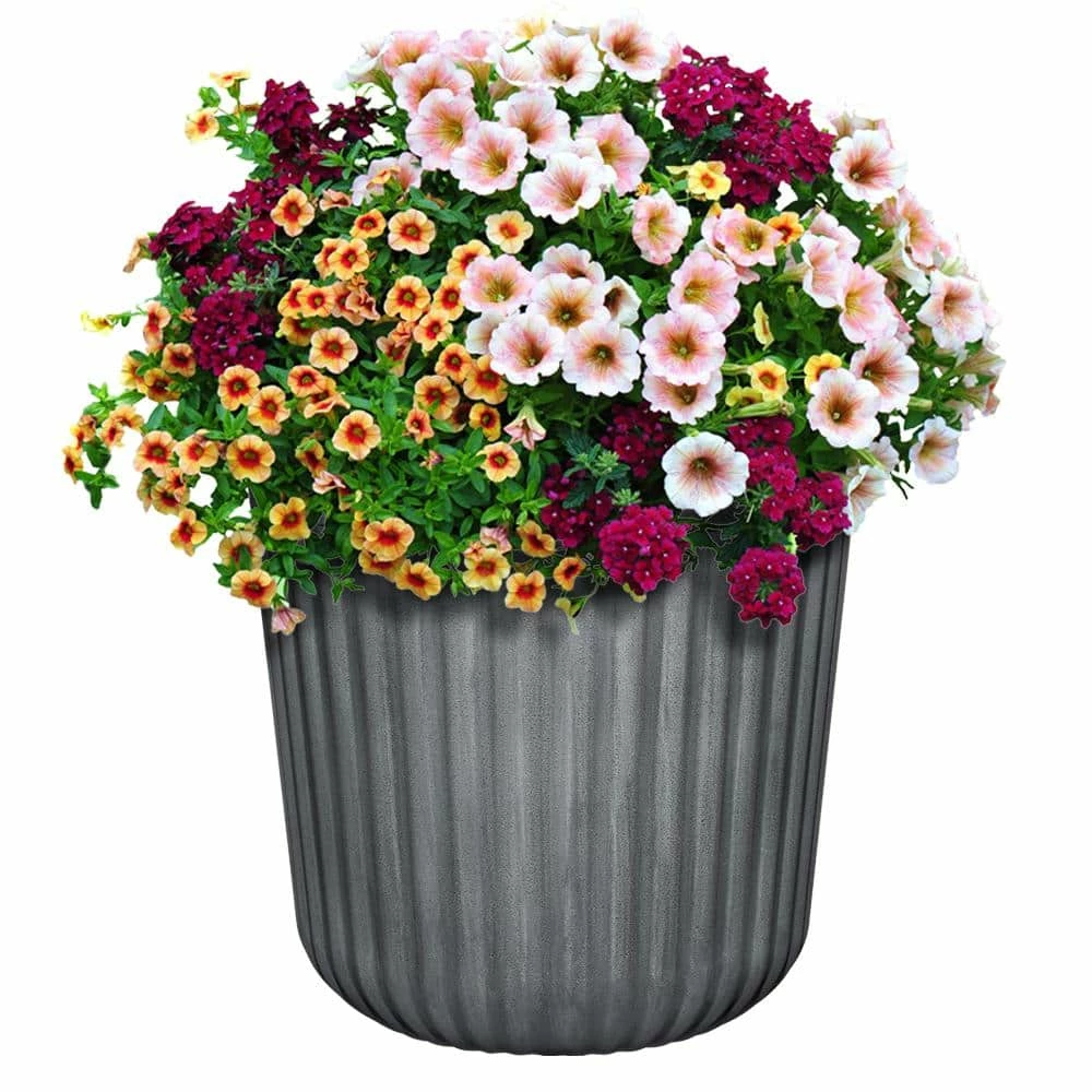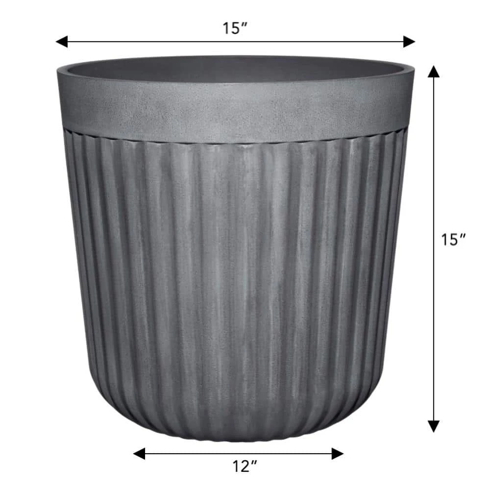 Spruce up your space with this Arlington Fluted 15 in. x 15 in. Shadow Slate Resin Self-Watering Planter. The material gives off a fiber clay appearance. It’s resistant to cracks. Place this planter around your entryway, patio and a variety of other places around your home.