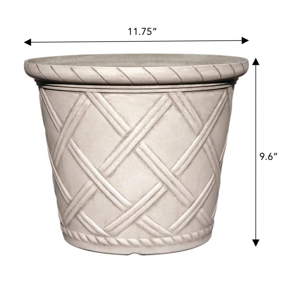 The Bingham planter offers an elegant design to blend seamlessly into traditional or classic decor. The attractive finish is a stylish way to add visual impact on your table, patio, deck or entry way. The high density resin construction resists cracking and offers UV protection. Designed to fit the 10 in. Drop-N-Decorate plant container, you can quickly and easily create an eye-catching arrangement without any fuss. No need for soil or shovel. Just drop a 10 in. Drop-N-Decorate plant container into the Bingham planter and enjoy. These Drop-N-Decorate containers are available online or in select stores for your convenience. You can easily change the Drop-N-Decorate plant container seasonally to update and freshen the look. You can also create your own arrangement by planting your favorite flowers or plants as you wish. Choose from 2 sizes in the Bingham style (10 in. and 12 in.) to create a designer-like coordinated look. The 10 in. and 12 in. sizes fit Drop-N-Decorate plants for easy gardening through the seasons. These sizes are designed with a self-watering reservoir. You will save time, money and water to help yourself, your plant and the environment.
