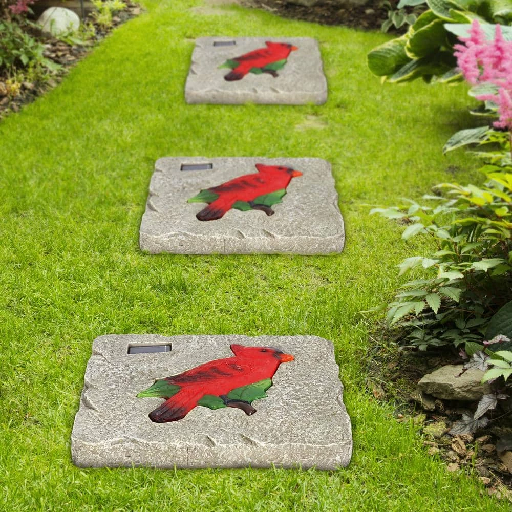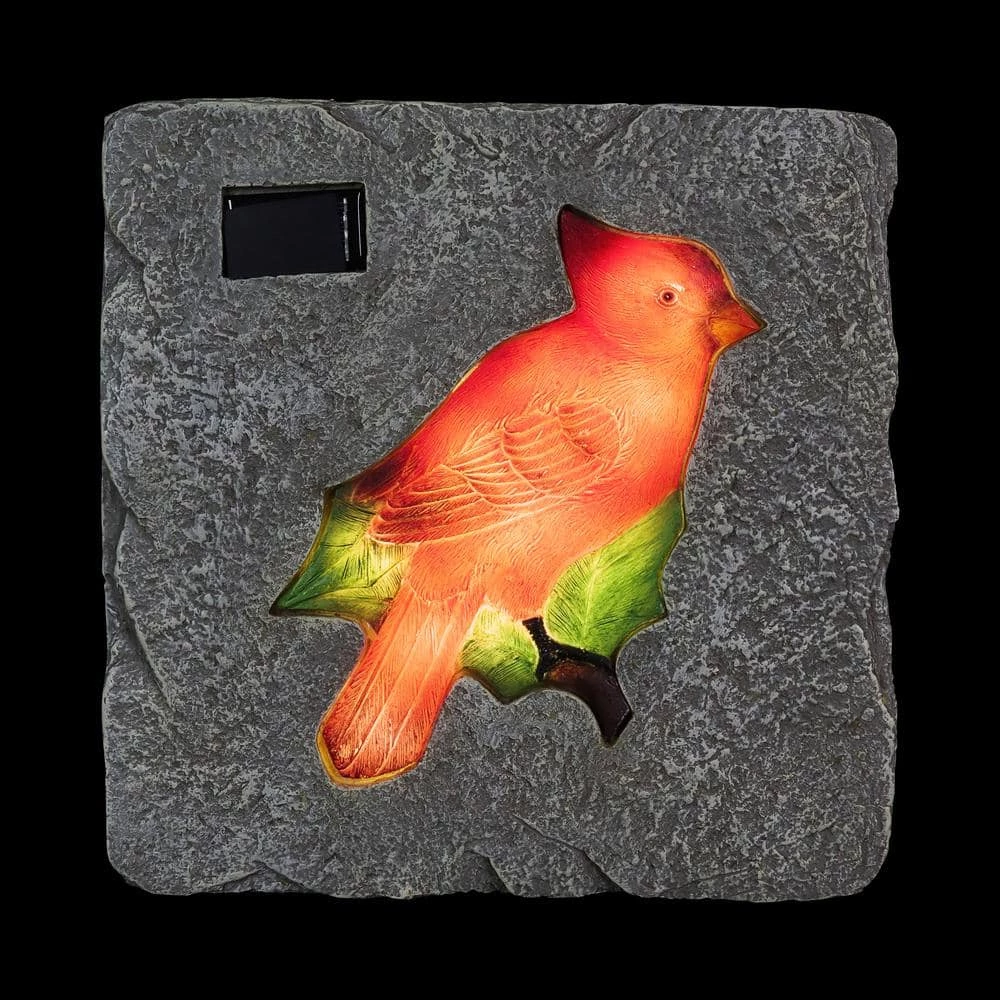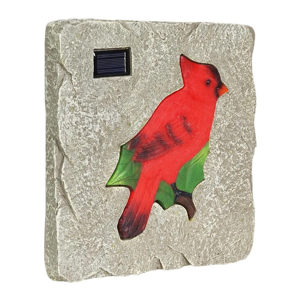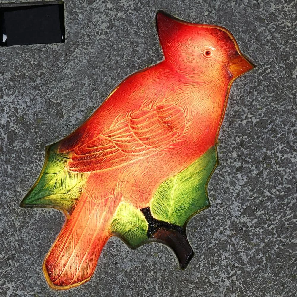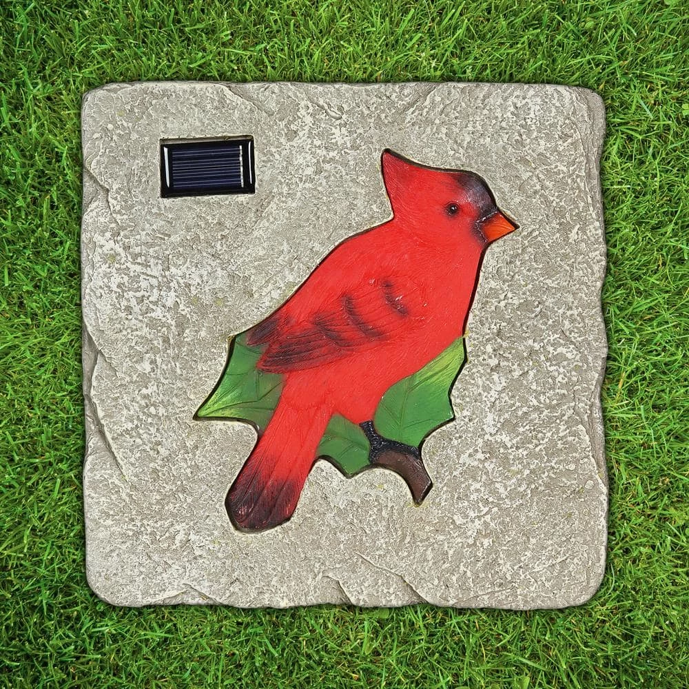 A stunning red cardinal will illuminate from within this garden stepping stone with solar powered LED light. Designed to look like cement, this stone is made of durable resin so it is easy to place and maintain. Add a touch of magical charm to your garden with a beautifully crafted Garden Stepping Stone.