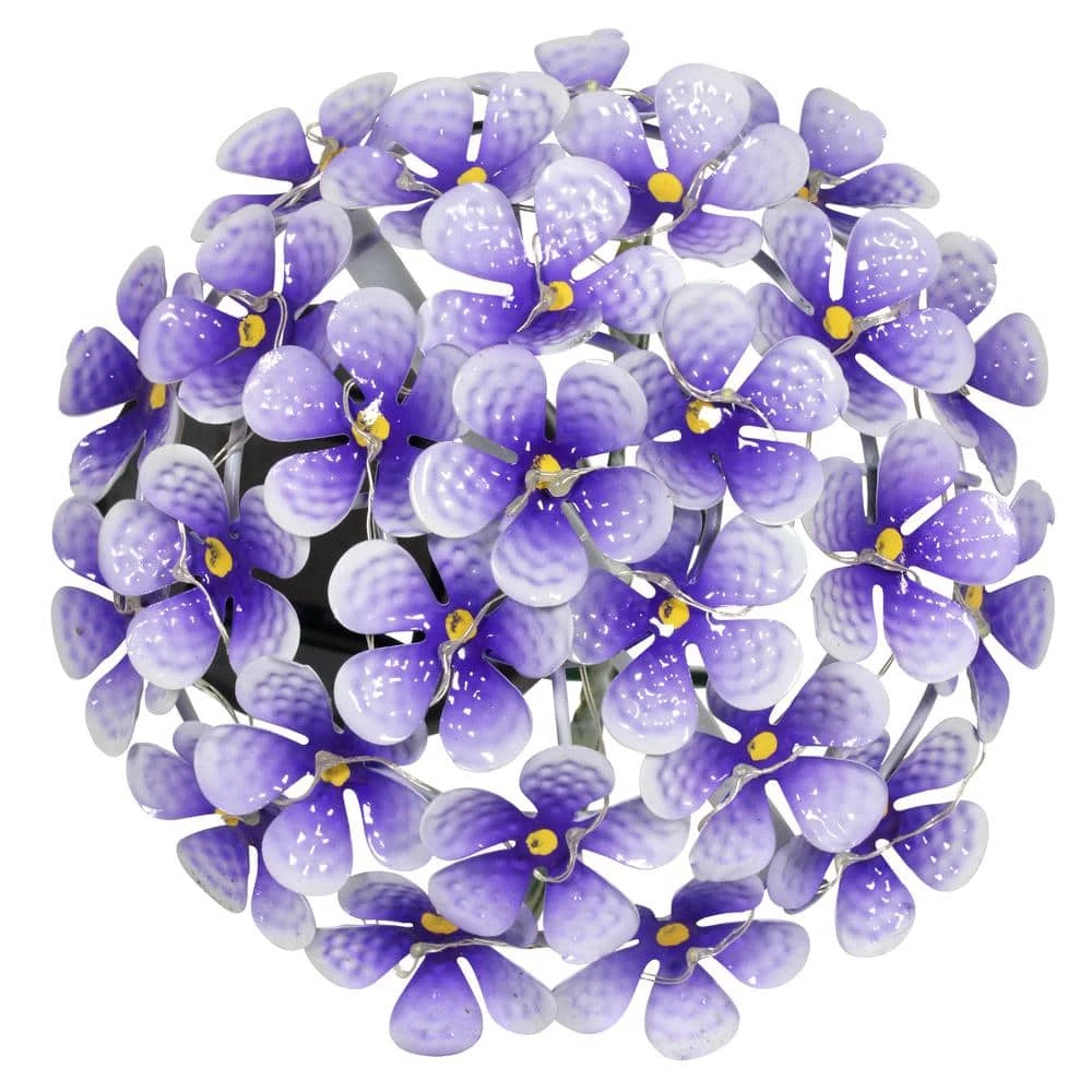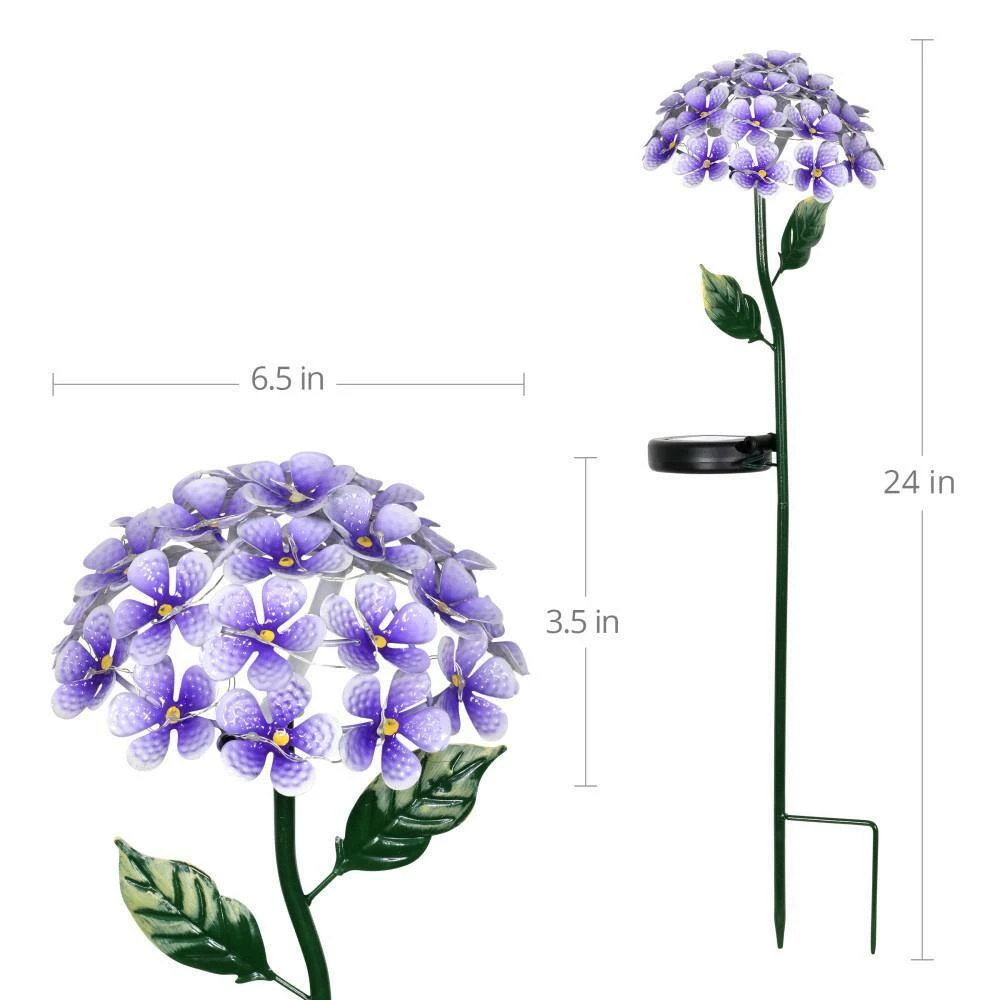 Enjoy the full bloom and decorative glow of this gorgeous solar purple hydrangea garden stake day and night, all year long! At dusk, 26 solar-powered LED lights will automatically illuminate the beautiful, hand-painted flower. Adds an instant touch of color, light, and elegance to your garden. Makes a fabulous gift that’s always in bloom!