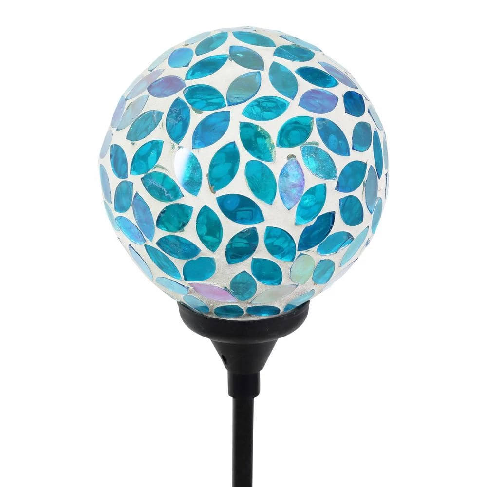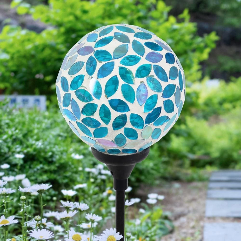As the sun sets and dusk settles in, your beautiful glass mosaic ball stake glows from within, setting off the intricate blue marquise shaped design. This Illuminating Solar Glass Stake adds an exquisite decorative touch to your garden day and night. Makes a thoughtful gift and a wonderful addition to any home.