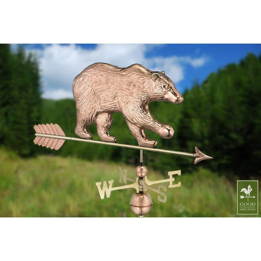 On his way to catch salmon in the river or raid a blueberry patch, this big bear is always respected. Now he’s ready to adorn the rooftop of your home, garage, cupola, barn or gazebo. Good Directions’ pure copper weathervanes are unsurpassed in style, quality and durability – perfect for the house-proud homeowner. Bring The Joy of Outdoor Living to your home with this heirloom-quality piece.